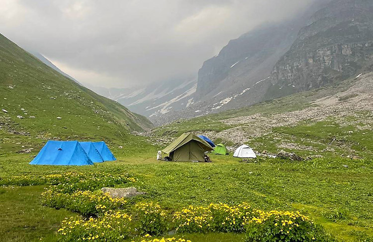 On this day ascending and descending trail passes through high and low meadows, dense Birch forest which indicates the last tree line on any trek, and stream crossing takes place on this day. The Dhauladhar mountain ranges with snowcapped peaks make this day trail extra attractive. It will take three hours to reach Litham. Overnight stay will be at Litham campsite.