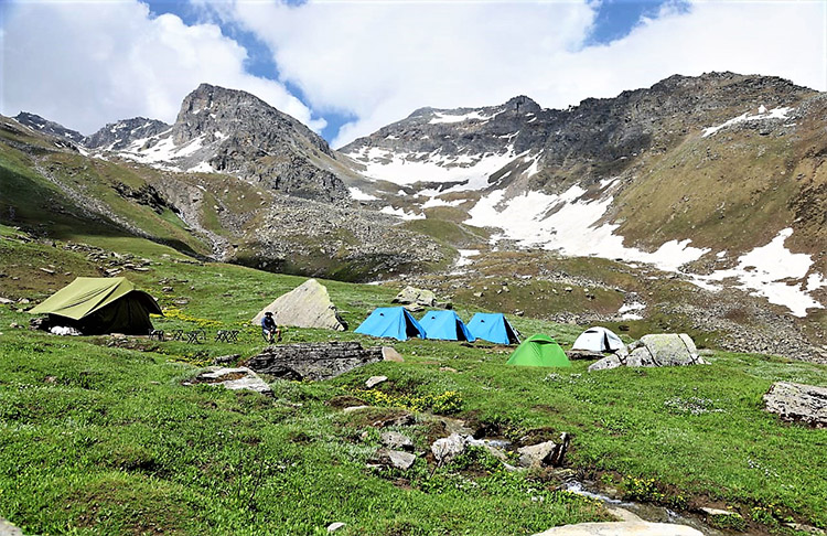 On this day excursion to Chandra Nahan Lake takes place for the sake of acclimatization. We will start early and return back by 2.00 pm, as the weather conditions deteriorate due to its high altitude. It is a steep ascent to Chandra Nahan Lake and steep descent for return to Litham. On this day the fitness and endurance levels of the participants will be tested. The tips of very well-qualified and experienced Adventure Delight’s trek leaders will come in handy for crossing the frozen glaciers and snow wall on the way. All the participants are advised to wear micro spikes and use a trekking pole for this stretch. The size of Chandra Nahan Lake shrinks due to freezing. The snowfield surrounds Chandra Nahan Lake. The glacial water feeds this lake. We will also visit the snout of this lake, which is also considered the origin of the Pabbar River. Snow-clad mountains on one side, a huge waterfall on the other make this campsite memorable.