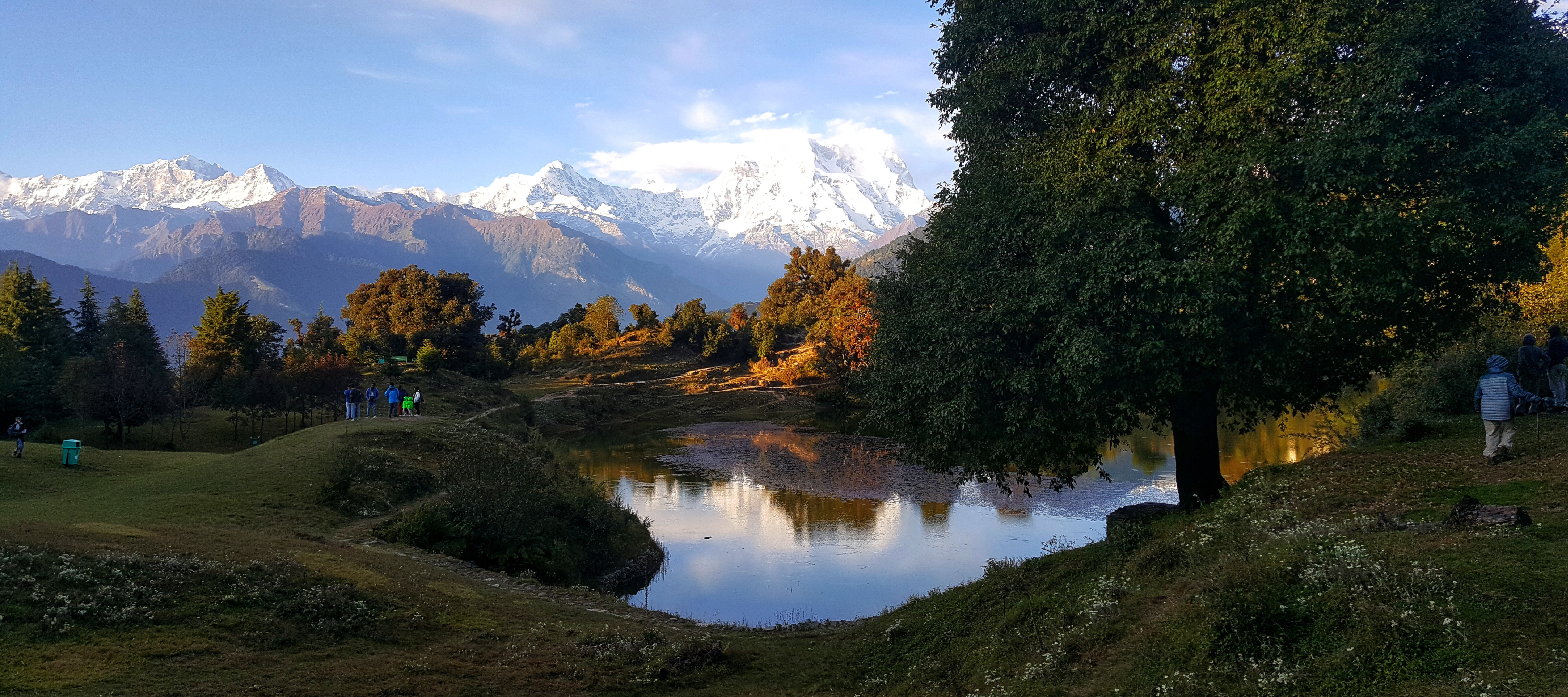 The trek is gradual, and with an average fitness standard, one can achieve the target in two hours. One is delighted with the generosity of the natural surroundings on reaching there. The reflection of the mighty peaks of the Great Himalayas in the bottle-green waters of the lake is not only exciting but presents a world experience. One can have the chance to witness Kedarnath and Chaukhamba Peaks from a very near distance. There is also a watchtower from where one can soak in the beauty of surroundings. It is a photography lover’s favorite point. Due to pollution concerns stay in the camps near Deoriya Taal is prohibited. But we have chosen a site not far from Deoriya Taal where one can enjoy the magic moments of Deoriya Taal in its full bloom. The sunsets and sunrise are out-of-the-world spectacles, hence night stay near Deoriya Taal.