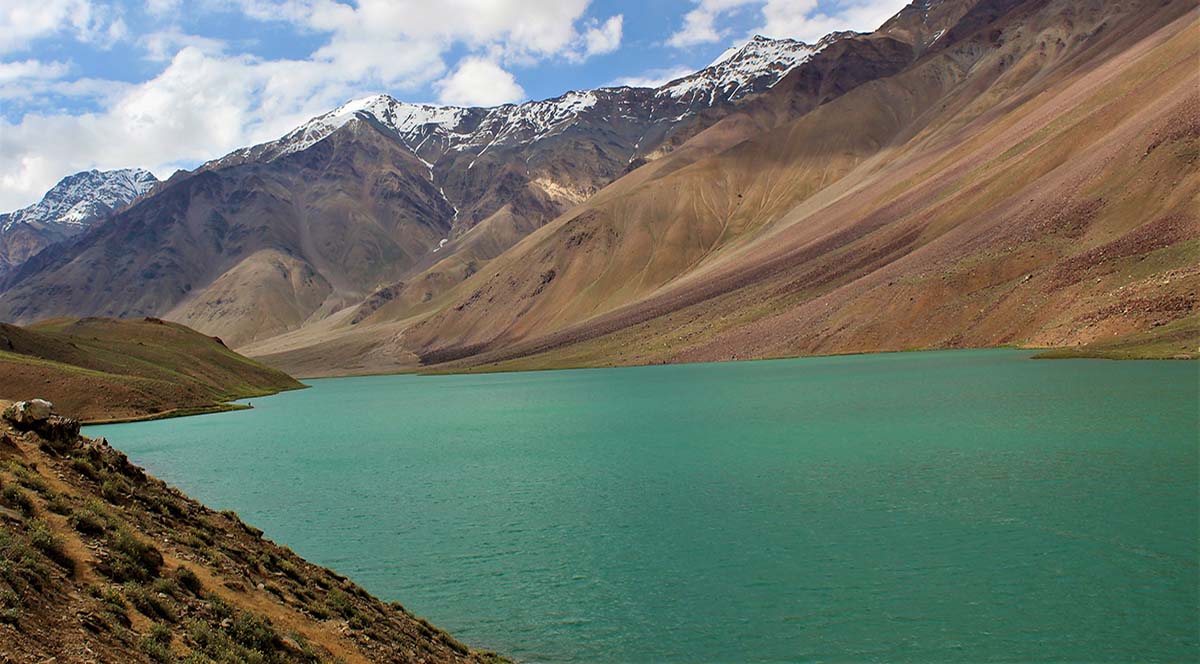 Chandra Taal: The turquoise blue, crystal clear water, multicolor surrounding snow-capped mountains, and carpet of green meadow dotted with numerous varieties of flowers surrounding the parameter of this moon-shaped lake is an incredible lifetime experience. The color of the water of this lake changes at different times of the day, presenting a wholesome adventure. It is at the height of 14,100 feet.