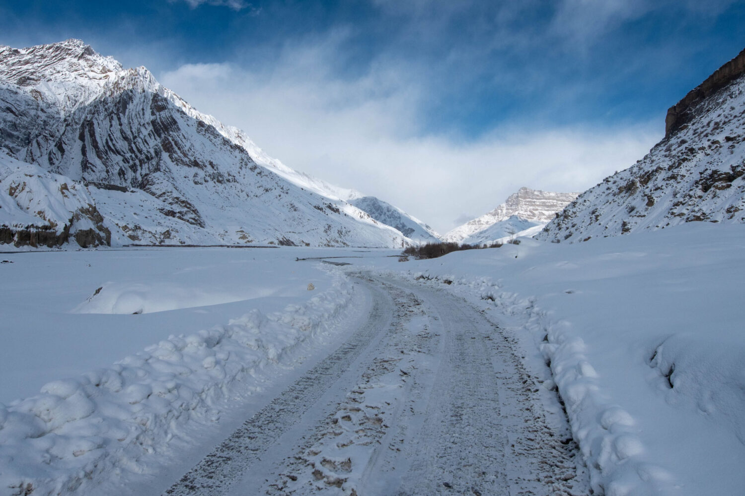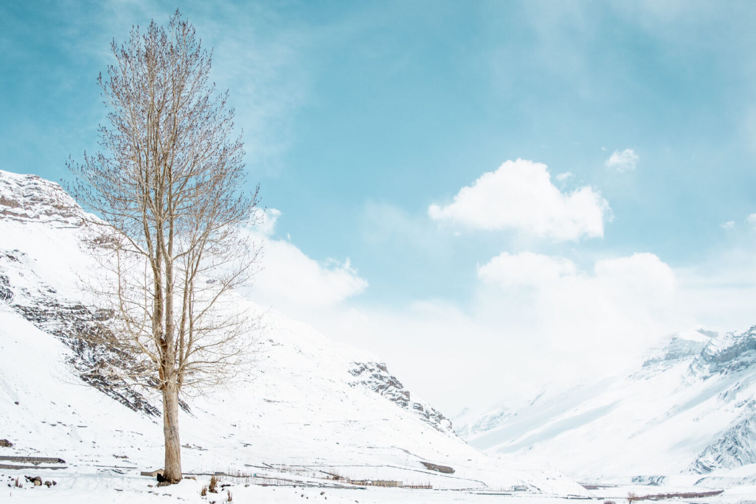 It becomes pretty difficult to pinpoint the horizon at some places as it becomes impossible to differentiate between sky and landmass due to the white blanket of snow engulfing everything. At the same time, the temperature drops to -25 degrees in Spiti Valley.