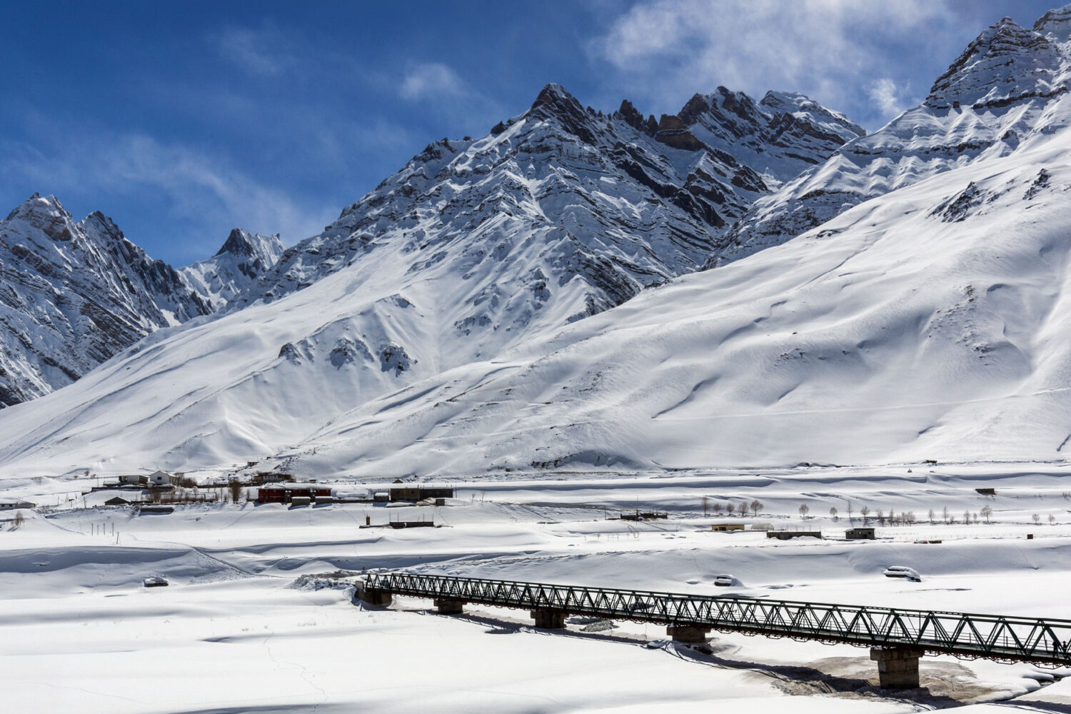 Spiti Valley, The High Altitude Cold Desert, gets transformed into a fairy tale destination because the white layer of snow wrap all houses, mountains, gorges, roads, monasteries, trees, agricultural fields, and narrow lanes of the villages. The frozen waterfalls and eternal stillness adds intrigue to the white snow-draped Spiti Valley.